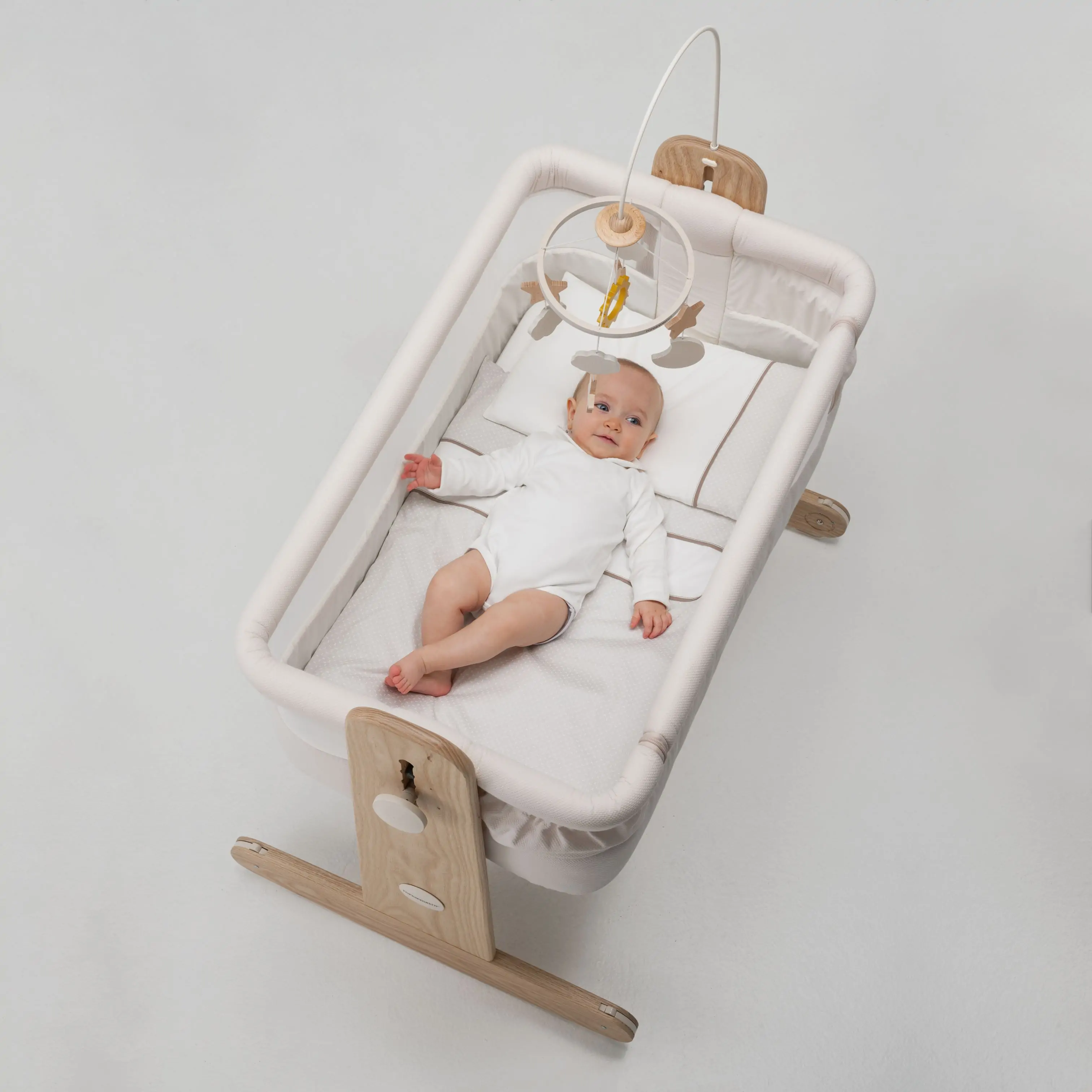 ელექტრო რწევის სისტემა აღჭურვილია ტირილის დეტექტორით, რომელიც ბავშვის ხმაზე ავტომატურად რეაგირებს და იწყებს რწევას მშობლის ჩარევის გარეშე. ქანქარისებური მოძრაობა მუშაობს 5 განსხვავებულ სიჩქარეზე, რაც საშუალებას გაძლევთ ინდივიდუალურად მოარგოთ რწევის ტიპი ბავშვის რიტმსა და საჭიროებებს. დამატებითი კომფორტისთვის საწოლში ინტეგრირებულია 23 დამამშვიდებელი მუსიკალური მელოდია, რომლებიც ხელს უწყობს სწრაფ და მშვიდ დაძინებას.