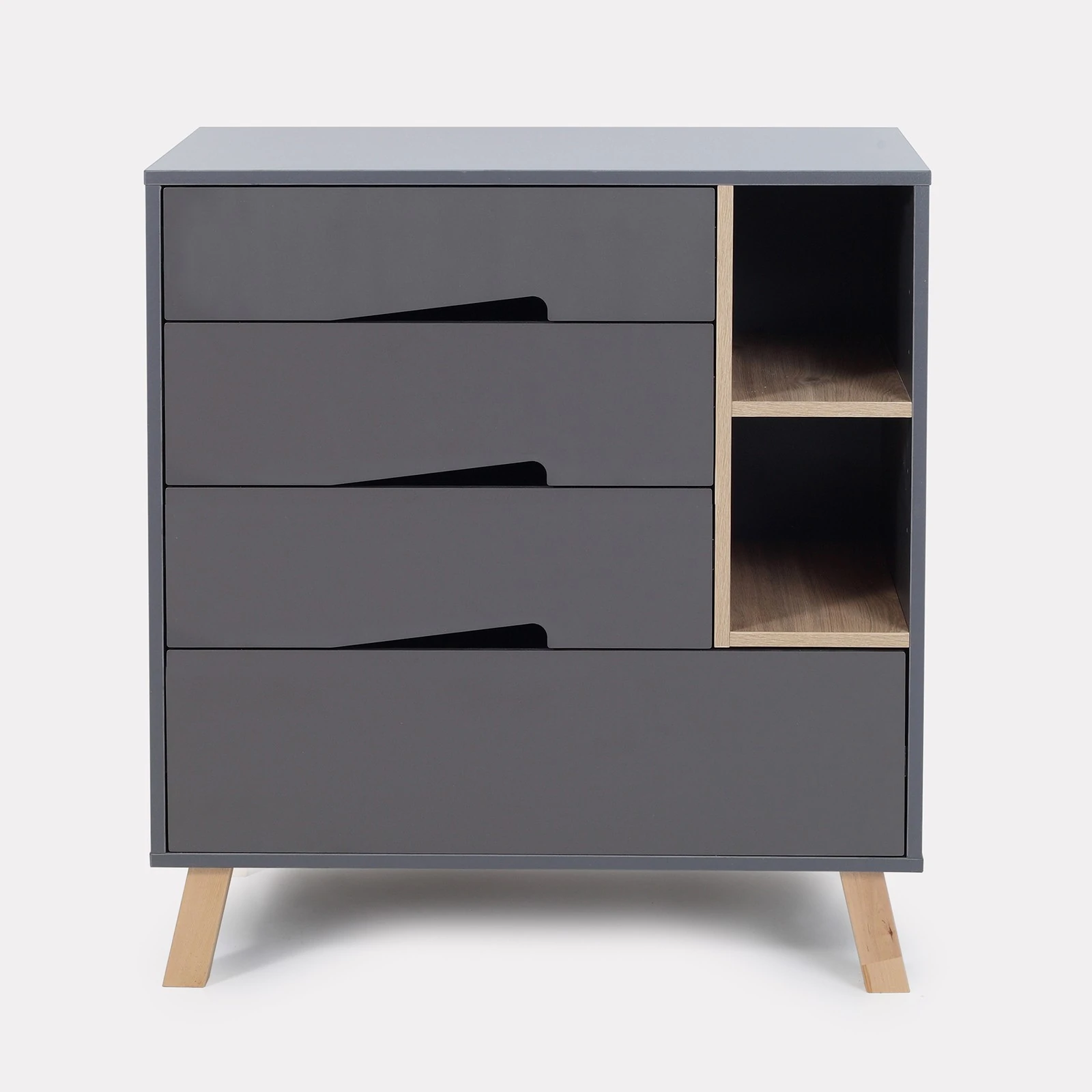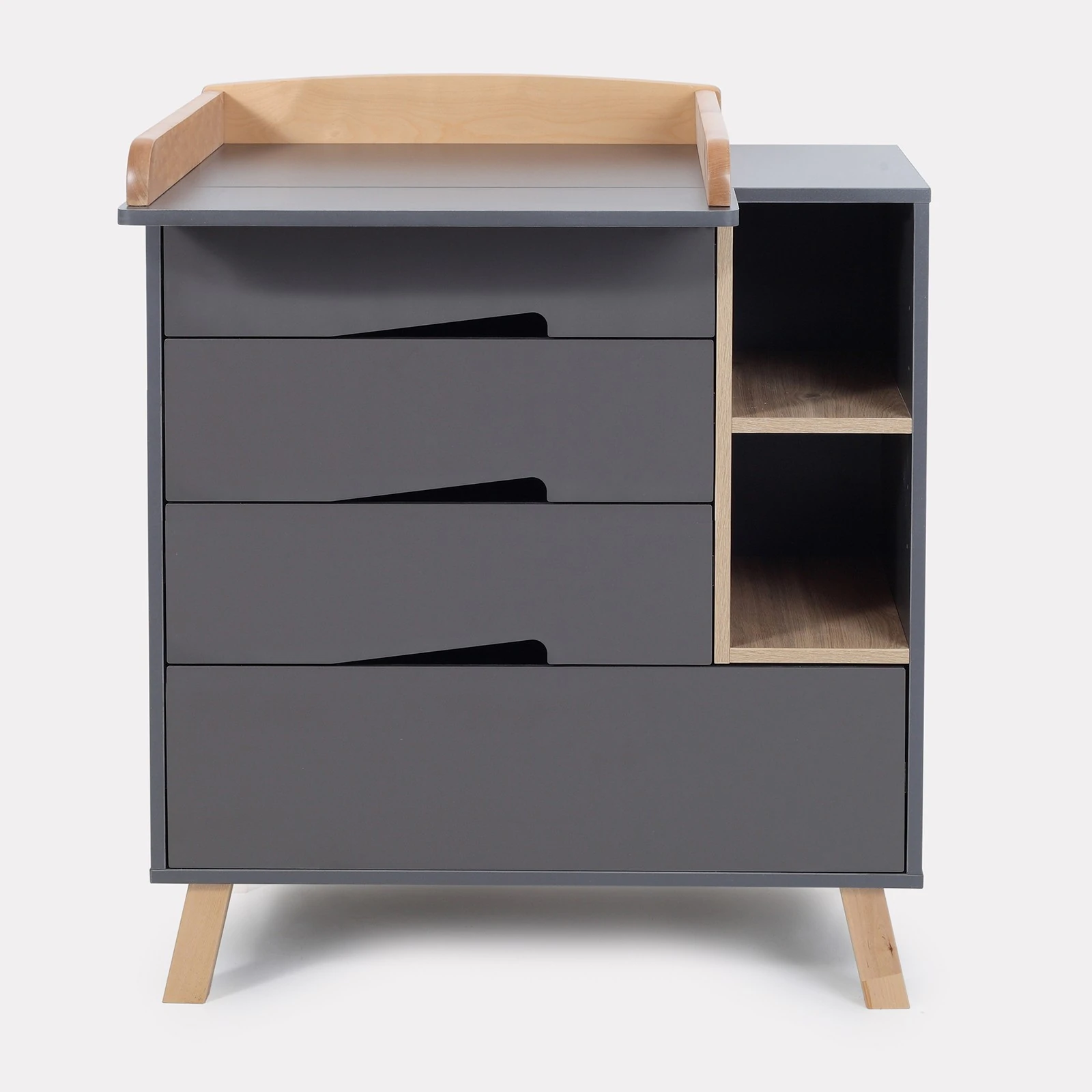 Эффектный пеленальный комод RANT LAGO выдержанный в трендовом стиле экоминимализм, выдаст в вас тонкого ценителя прекрасного. Эргономичная модель дополнена усиленными телескопическими направляющими, нетривиальными скошенными ножками, стильными фигурными выпилами вместо накладных ручек, а также съемной накладкой для пеленания, которую можно установить в двух положениях. Пеленальный комод моментально впишется в ваш интерьер благодаря оригинальным деталям и эргономичному исполнению.