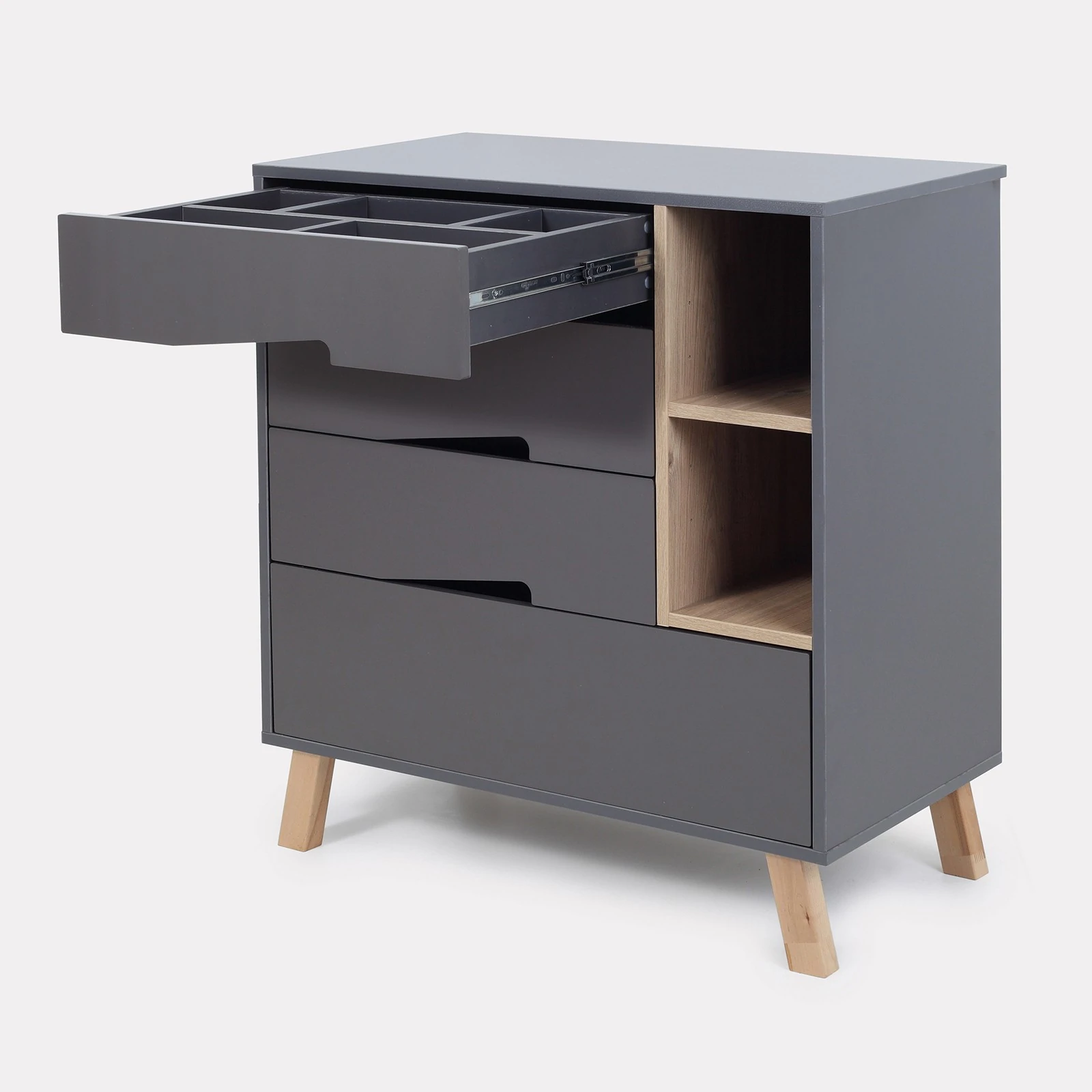 - 4 вместительных выдвижных ящика бесшумны - они не потревожат спящего кроху