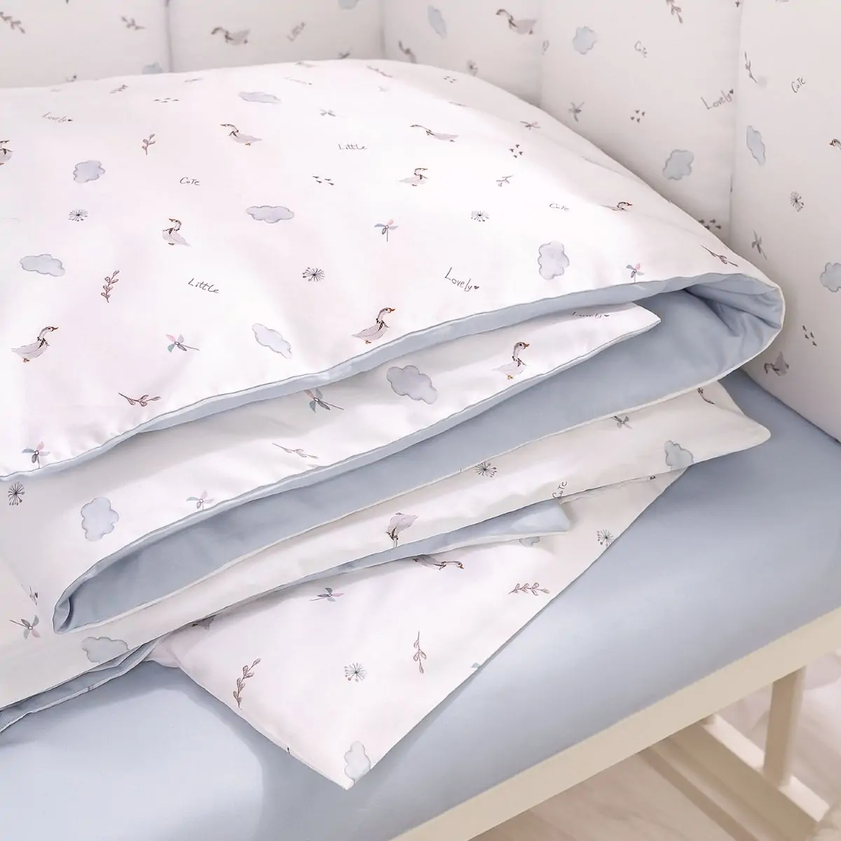 Продуманные детали делают комплект удобным в использовании: пододеяльник на молнии легко застегивается, а простыня на резинке плотно фиксируется на матрасе.