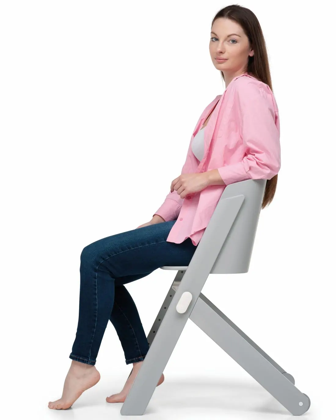 Сиденье и подставка для ног регулируются по высоте в нескольких положениях и могут быть переставлены при необходимости. Два встроенных колеса позволяют легко перемещать стульчик по дому.