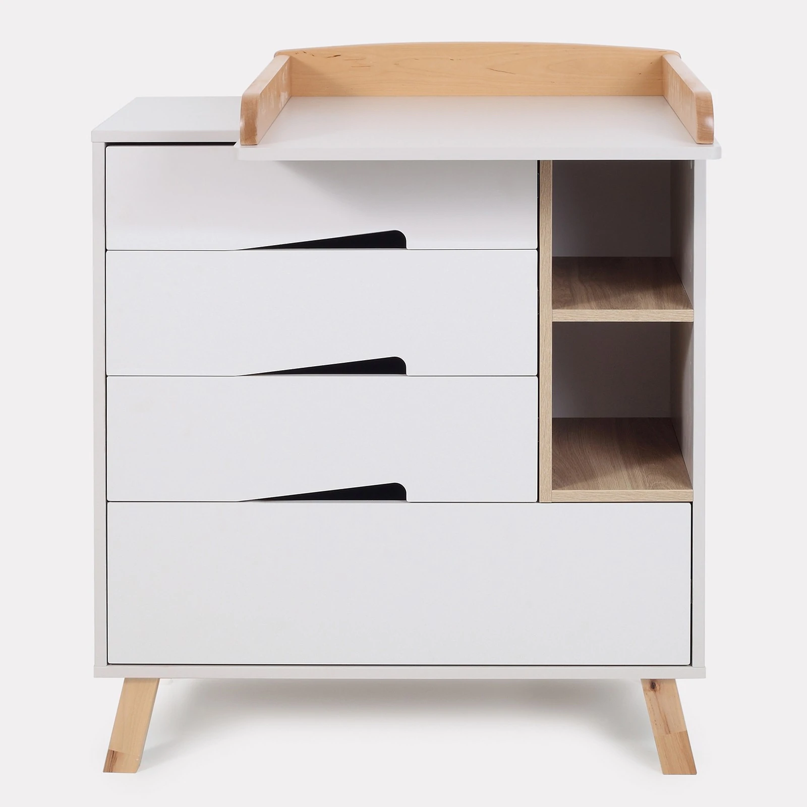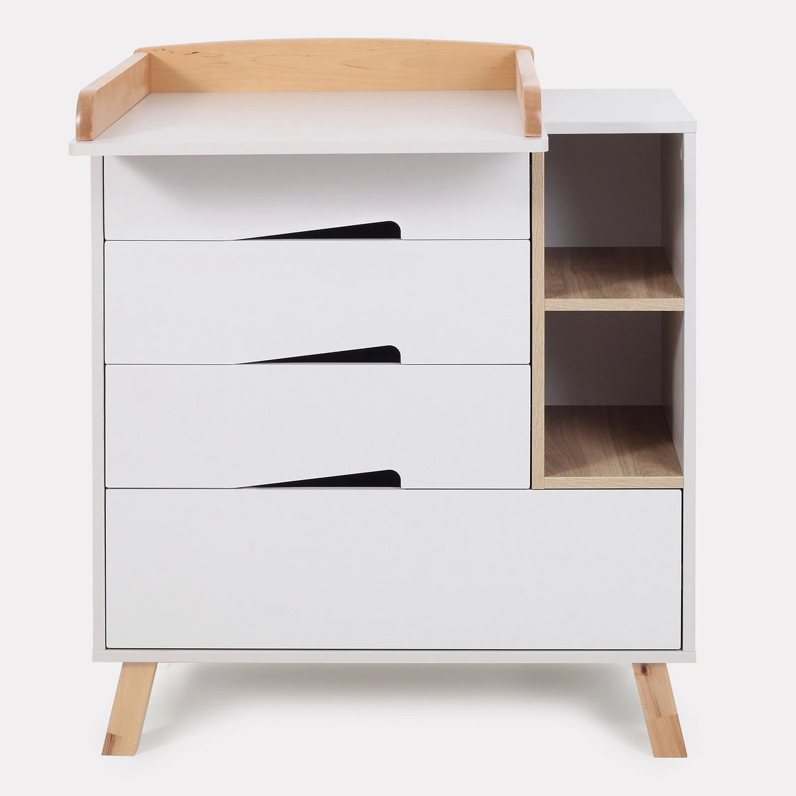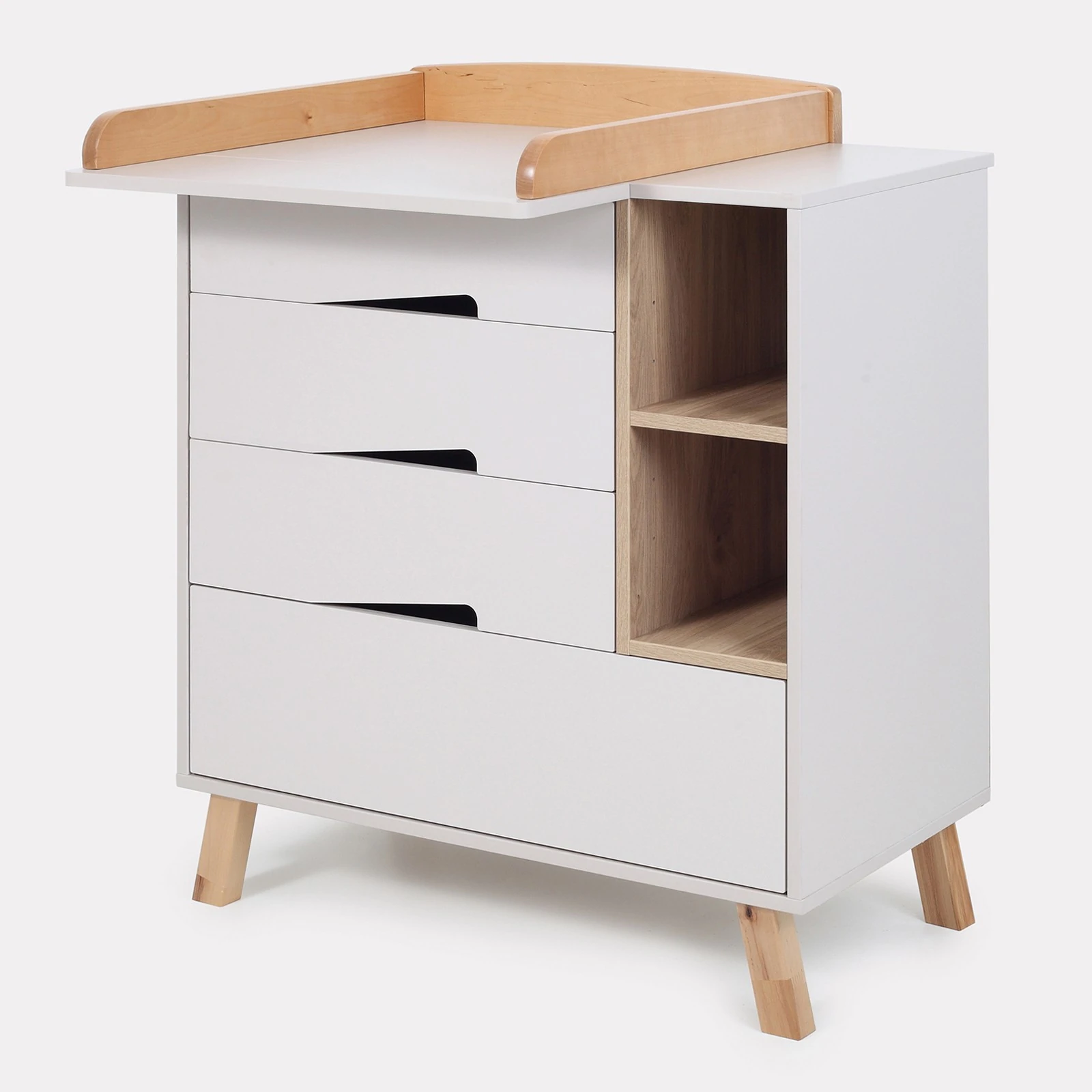 - კომოდი აღჭურვილია გამოსაცვლელი დაფით, რომელიც მას სრულფასოვან გამოსაცვლელ მაგიდად აქცევს. დაფას აქვს უსაფრთხოდ მომრგვალებული კიდეები და მისი დამონტაჟება შესაძლებელია ორ პოზიციაში — მარცხენა ან მარჯვენა მხარეს.