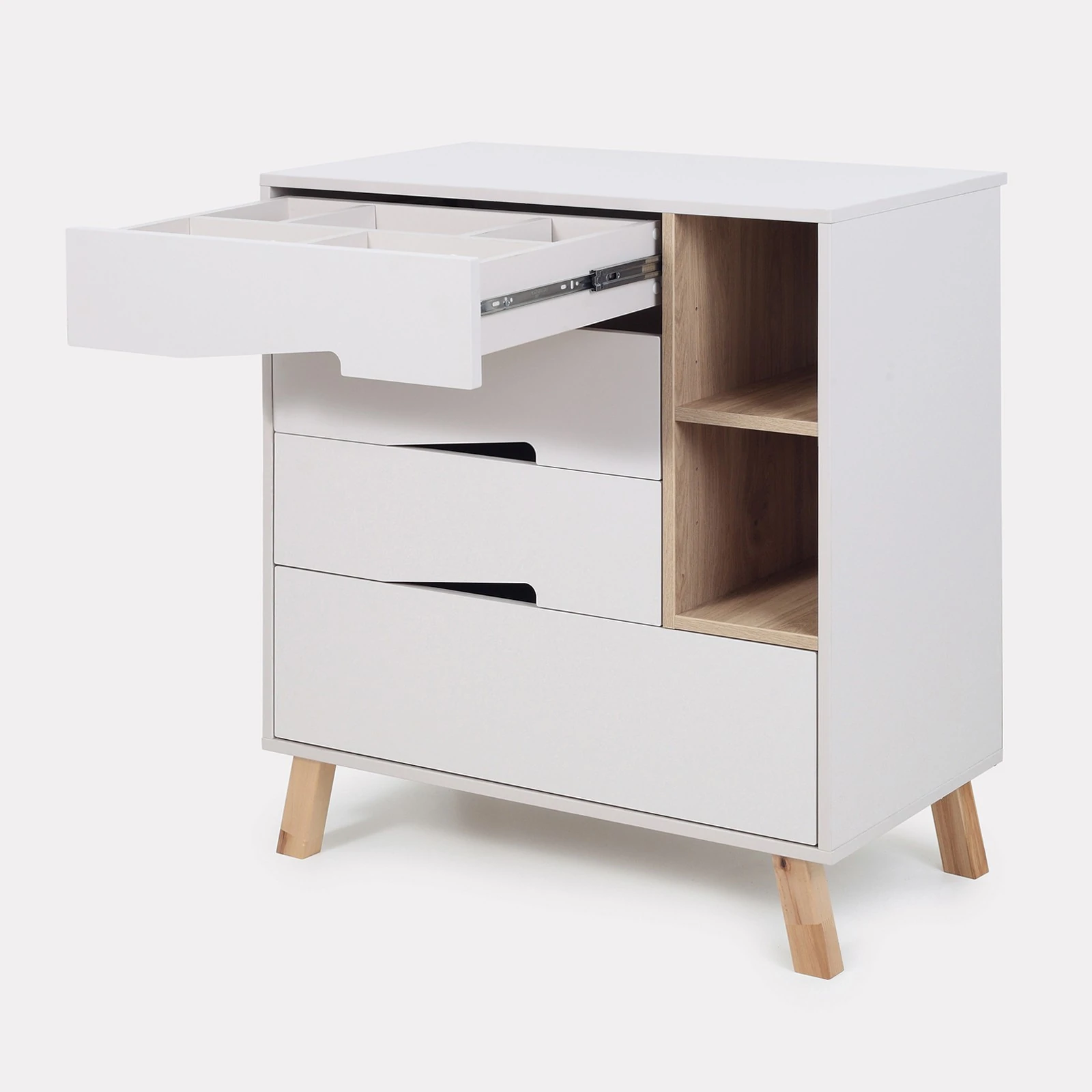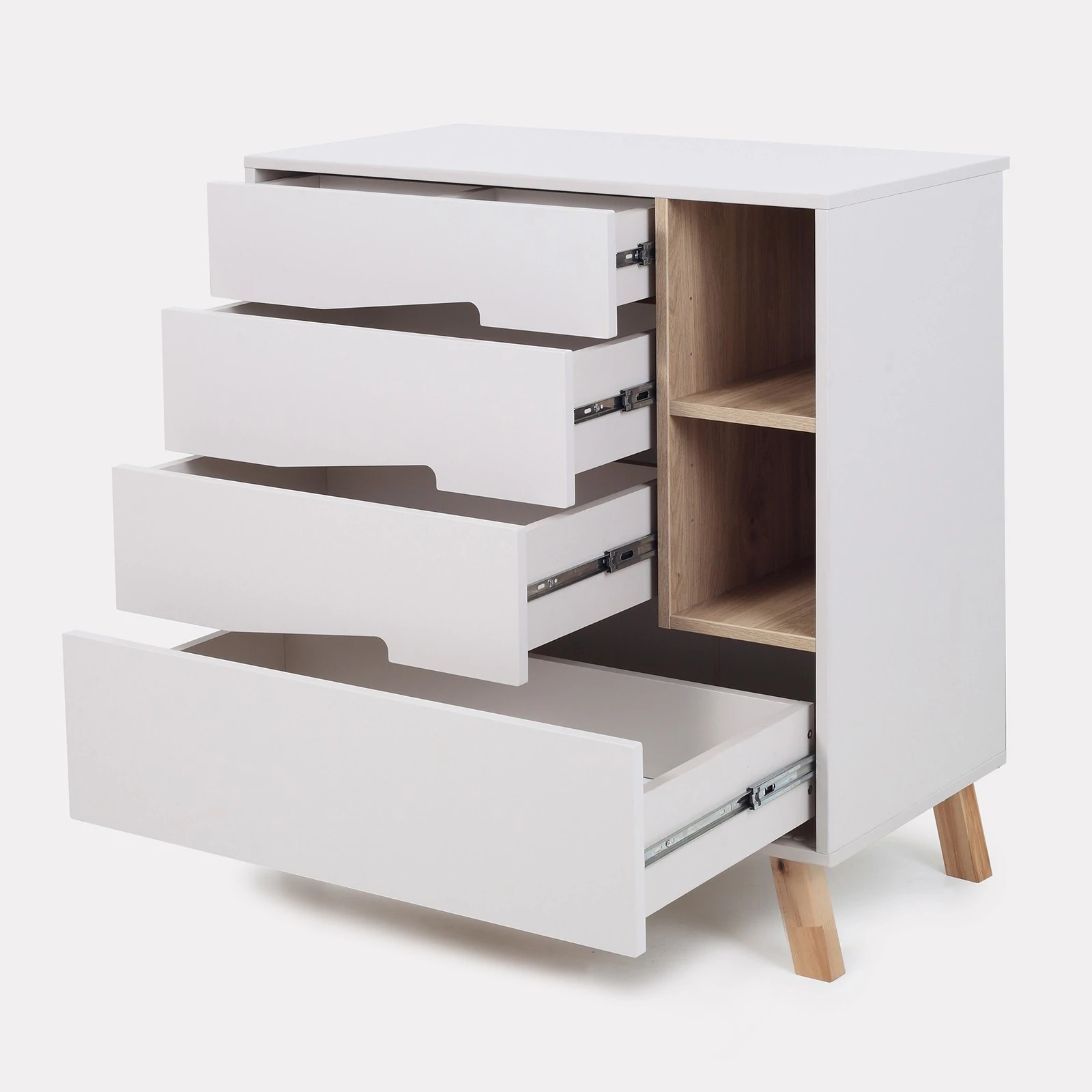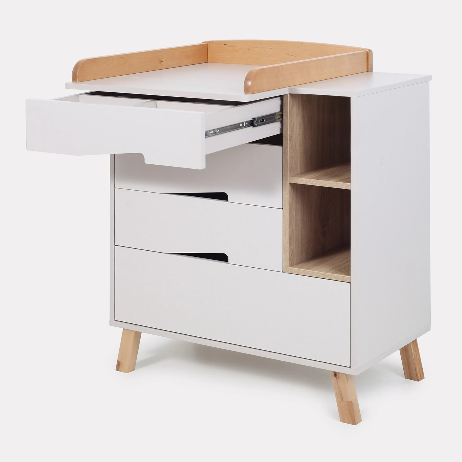 - 4 ტევადი გამოსაწევი უჯრა მუშაობს ჩუმად და არ შეაწუხებს მძინარე პატარას.